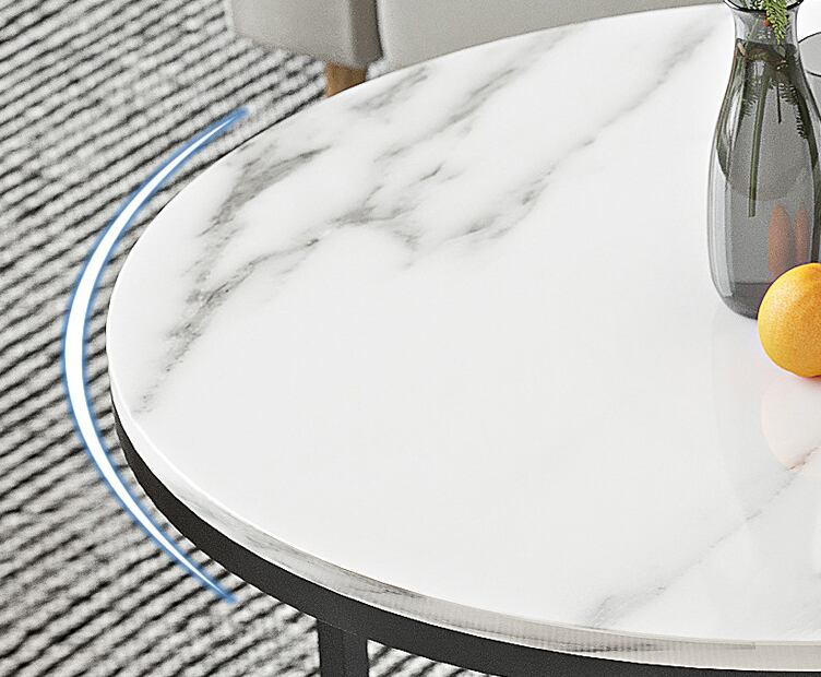 ・大理石柄の天板と細いスチール脚を組み合わせたネストテーブル。